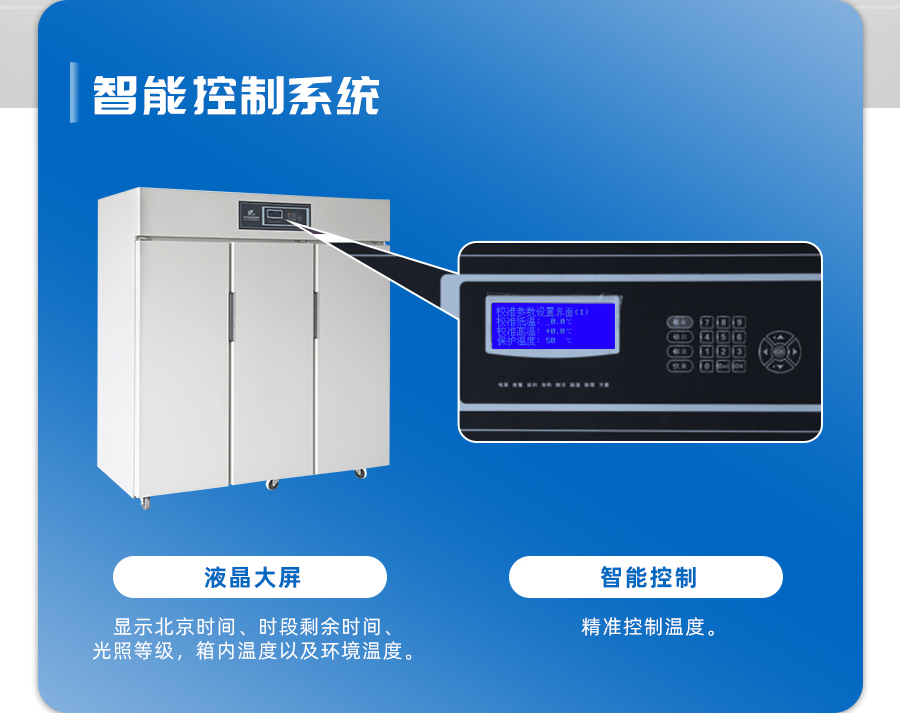 3、种子低温低湿储藏柜的控制系统具有除霜,延时,超温报警,自动除湿,时差纠正,紫外杀菌等功能,安全可靠。